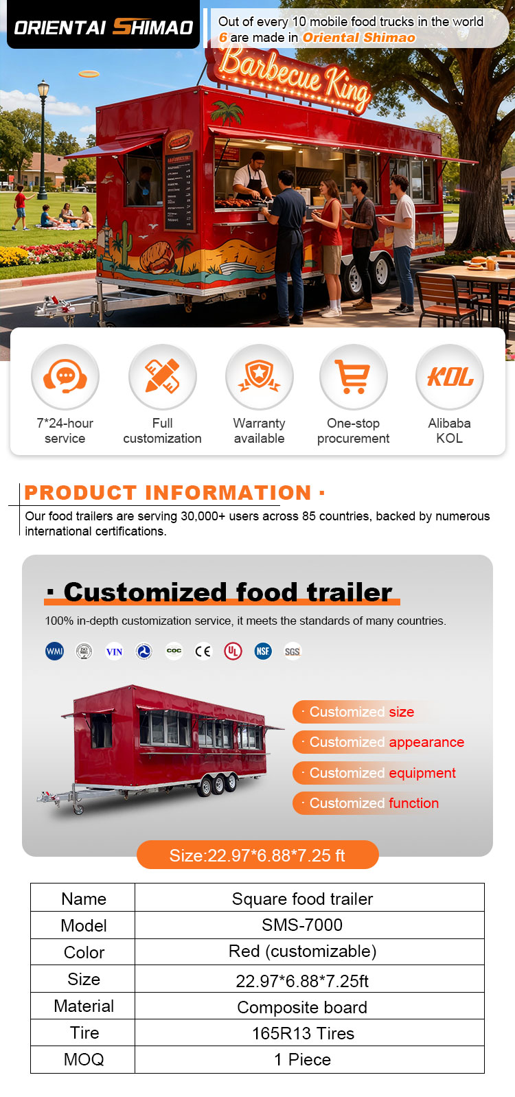 Chúng tôi có thể cung cấp các chứng chỉ Xe kéo phục vụ thực phẩm: DOT, CE, SGS, SCI, ISO, COC,