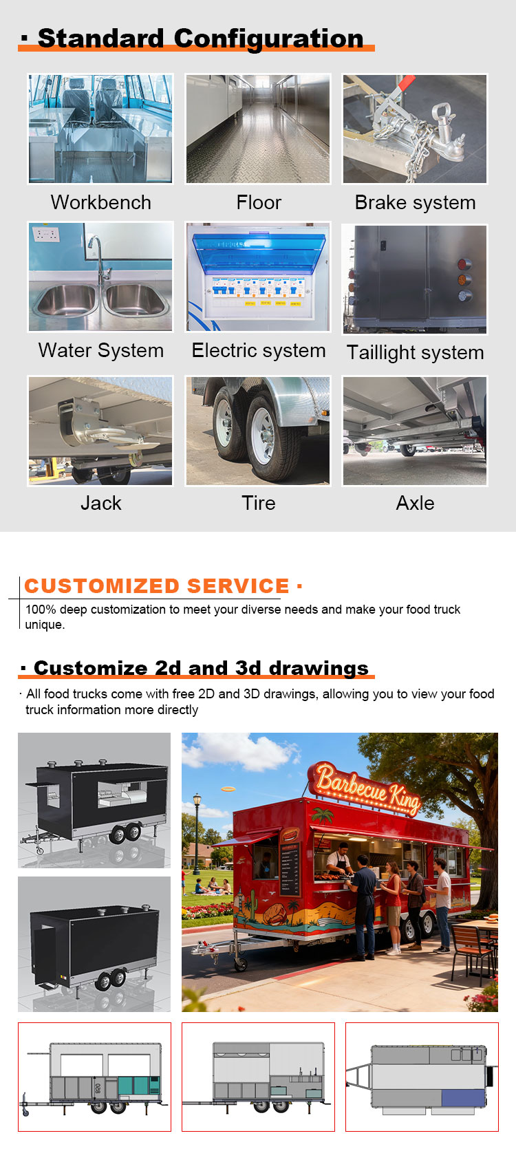 Thiết bị xe tải thực phẩm Thiết bị nhà bếp thương mại Dịch vụ ăn uống Trailer thực phẩm di động Xe tải thực phẩm