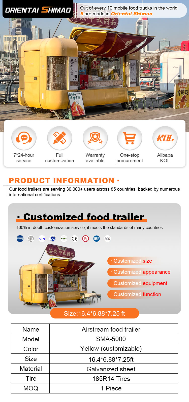 Chúng tôi có thể cung cấp các chứng chỉ di động cho xe cà phê: DOT, CE, SGS, SCI, ISO, COC,