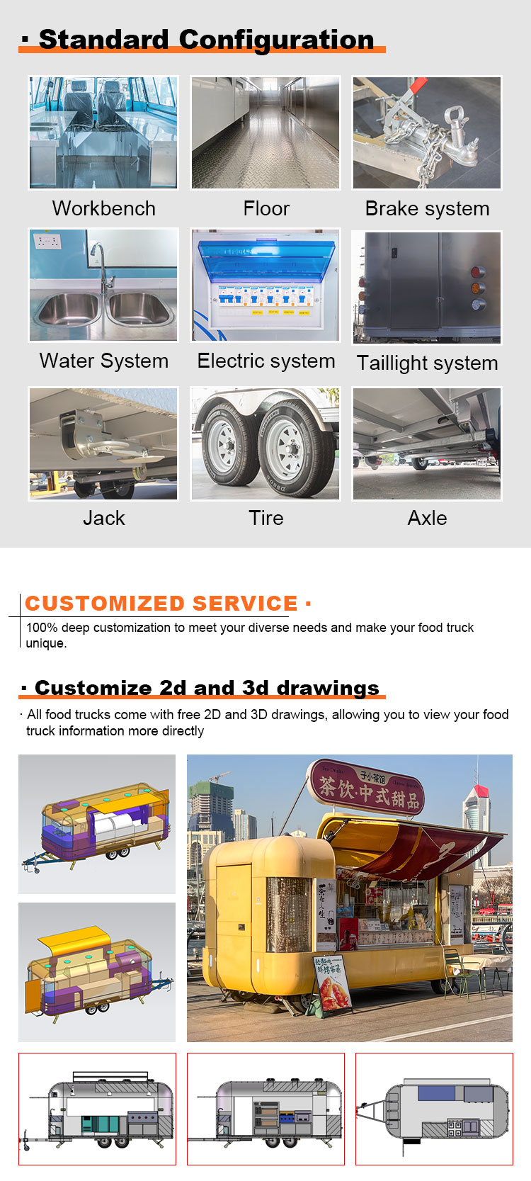 Trailer thực phẩm Xe tải thực phẩm có thể lái được Nhà bếp di động Phục vụ thức ăn đường phố Trailer Khái niệm xe tải thực phẩm