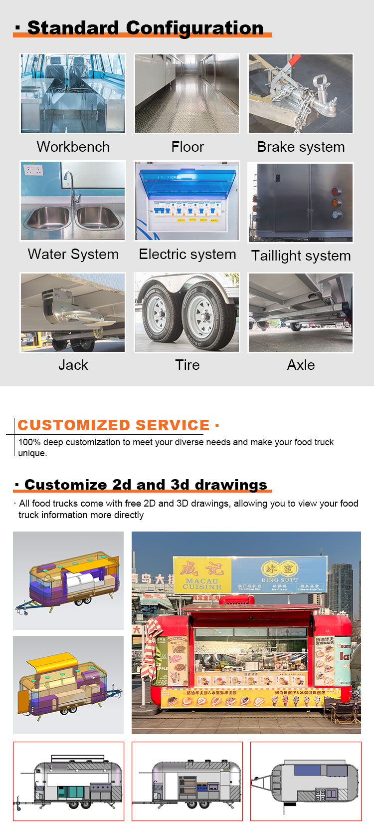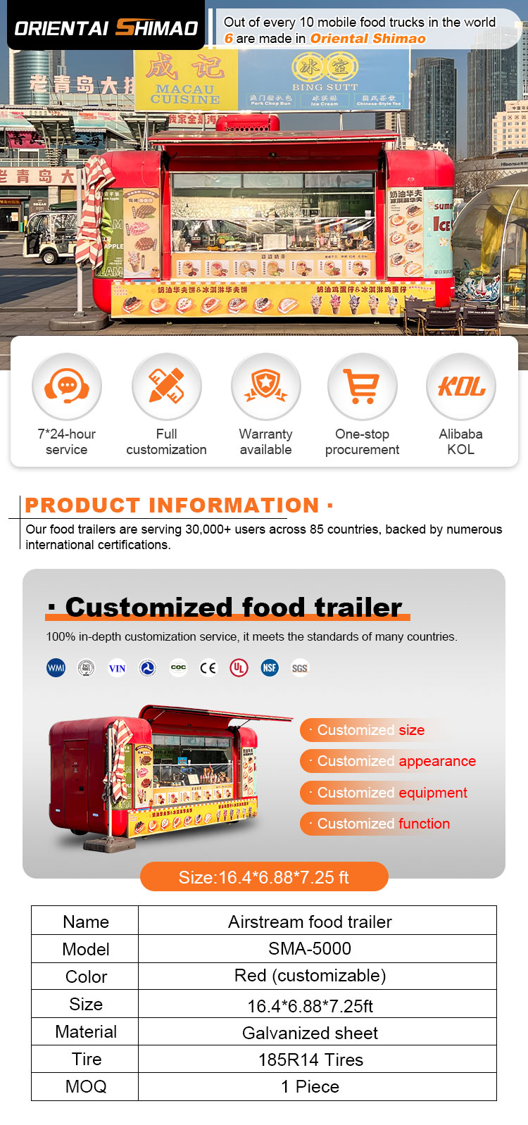 Chúng tôi có thể cung cấp các chứng chỉ Xe kéo phục vụ thực phẩm: DOT, CE, SGS, SCI, ISO, COC,
