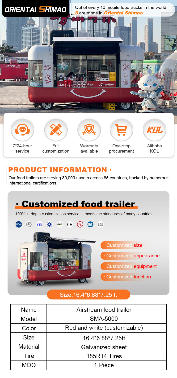 Chúng tôi có thể cung cấp các chứng chỉ Xe kéo phục vụ thực phẩm: DOT, CE, SGS, SCI, ISO, COC,