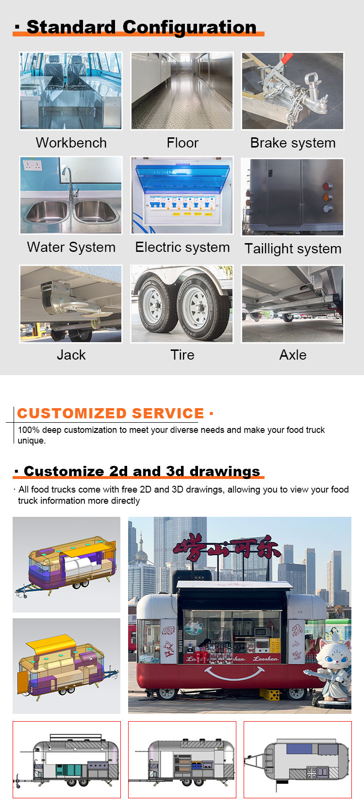 Trailer thực phẩm Xe tải thực phẩm có thể lái được Nhà bếp di động Phục vụ thức ăn đường phố Trailer Khái niệm xe tải thực phẩm