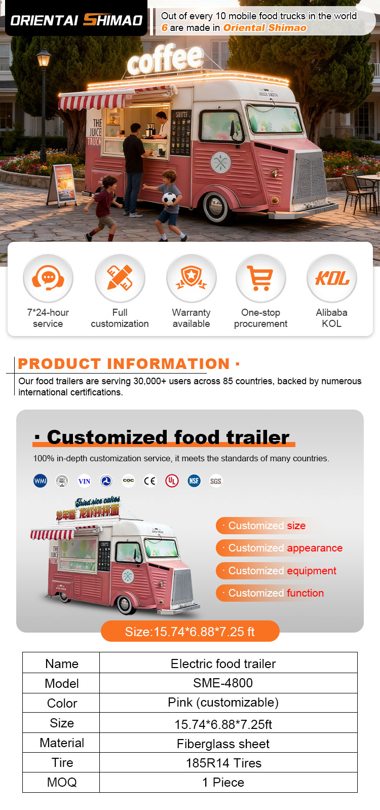 Chúng tôi có thể cung cấp các chứng chỉ xe tải thực phẩm Trailer DOT, CE, SGS, SCI, ISO, COC,