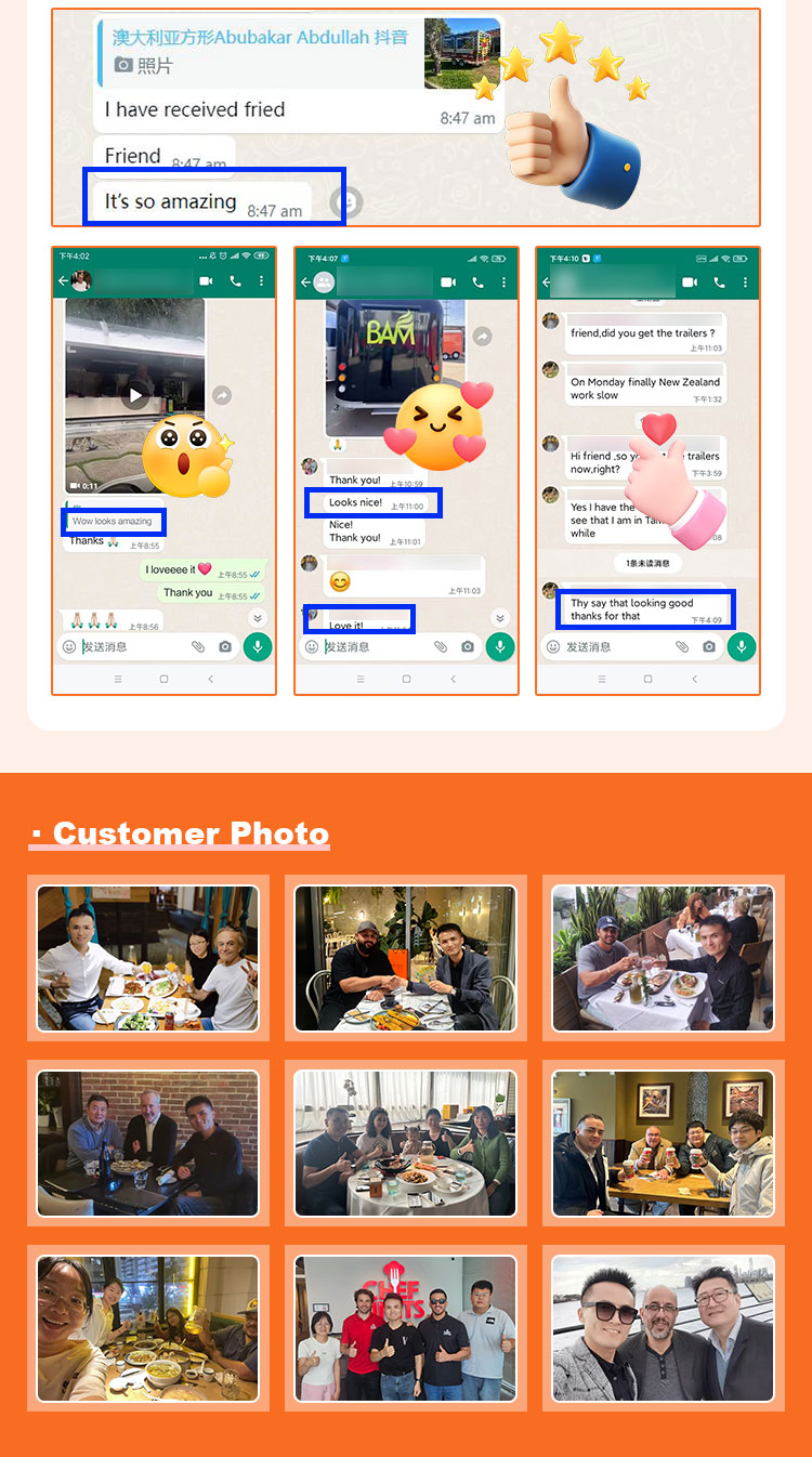 Đối với vật liệu chính, chúng tôi đã chọn thép không gỉ 304 chất lượng cao, được biết đến với khả năng chống ăn mòn tuyệt vời và độ bền tuyệt vời, đồng thời có thể duy trì hiệu suất ổn định trong nhiều điều kiện môi trường khác nhau, đảm bảo rằng các sản phẩm Xe tải Thực phẩm Trailer của chúng tôi có thể duy trì chất lượng và chức năng tuyệt vời ngay cả trong thời gian dài và đối mặt với nhiều thách thức. Khả năng chống ăn mòn tuyệt vời của thép không gỉ 304, do đó Xe tải không dễ bị ảnh hưởng bởi quá trình oxy hóa hoặc rỉ sét, giúp kéo dài tuổi thọ sử dụng của xe một cách đáng kể. Khả năng chống ăn mòn tuyệt vời của thép không gỉ 304 giúp Xe tải ít bị oxy hóa hoặc rỉ sét hơn, kéo dài đáng kể tuổi thọ sử dụng của chúng.