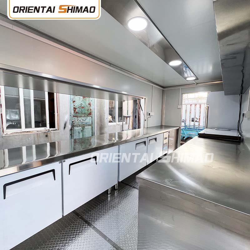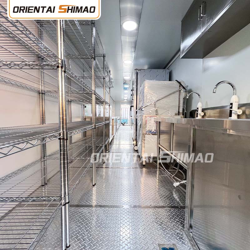 Bố trí nội thất: Quy hoạch hợp lý khu vực bếp, phòng ăn, kho chứa đồ và các khu vực khác đảm bảo tận dụng tối đa không gian. Đồng thời, theo nhu cầu kinh doanh, các khu chức năng khác nhau được thiết lập như khu sản xuất, khu sưởi ấm, khu bán hàng, v.v. để thuận tiện vận hành và nâng cao hiệu quả hoạt động.