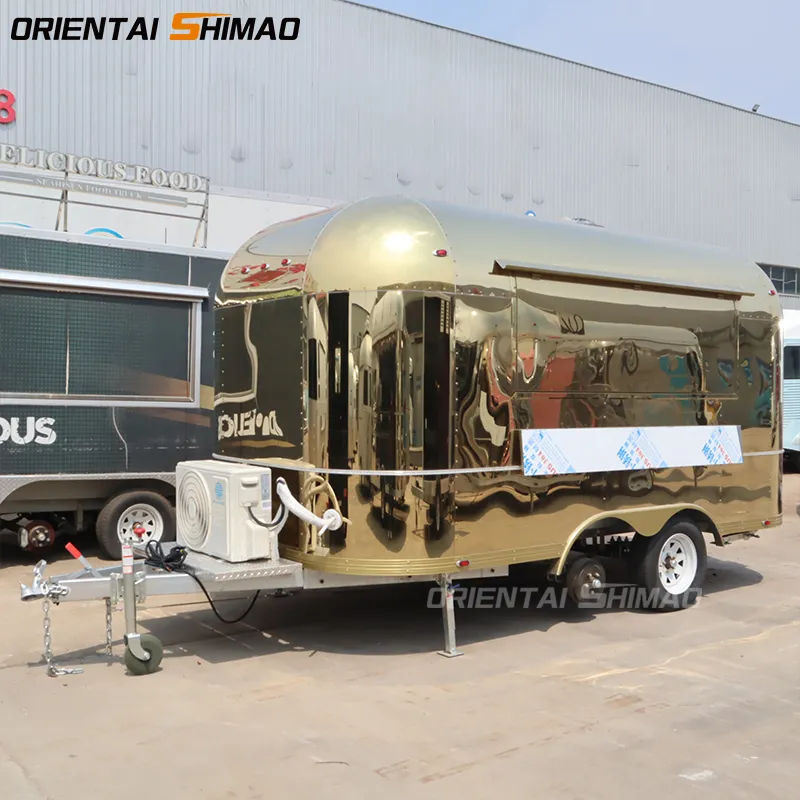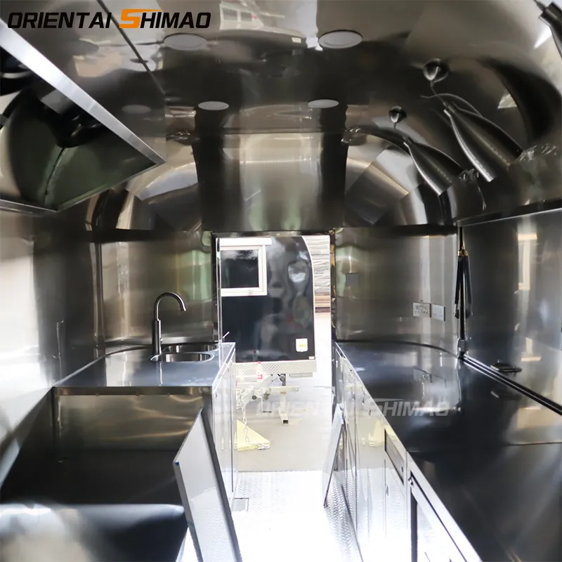 Van thực phẩm di động toàn bộ bằng thép không gỉ từ bên ngoài và bên trong, dễ lau chùi và không có bất kỳ liên kết nào, có thể sử dụng trong ngày mưa.