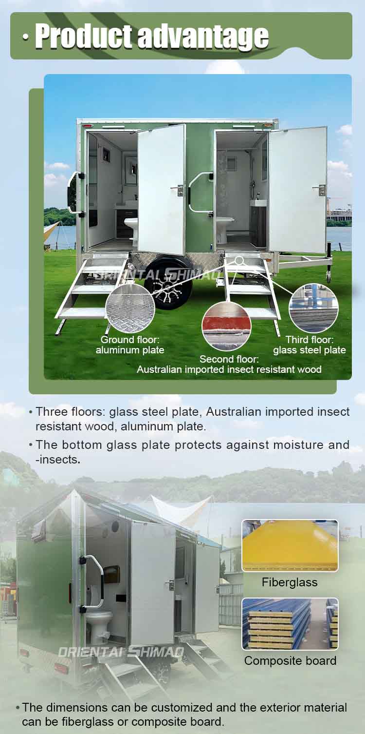 Oriental Shimao Deluxe Thân thiện với môi trường sinh học Trailer là một giải pháp nhà vệ sinh di động được thiết kế để đáp ứng nhu cầu cao cấp cho tất cả các loại sự kiện quy mô lớn, công trường xây dựng, trại ngoài trời và các địa điểm cứu hộ khẩn cấp. Kết hợp công nghệ môi trường tiên tiến với thiết kế thân thiện với người dùng, phương tiện vệ sinh này cung cấp trải nghiệm vệ sinh thoải mái, an toàn và hiệu quả, làm cho nó trở thành lựa chọn tốt nhất cho các cơ sở vệ sinh tạm thời hiện đại.