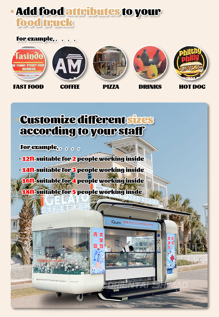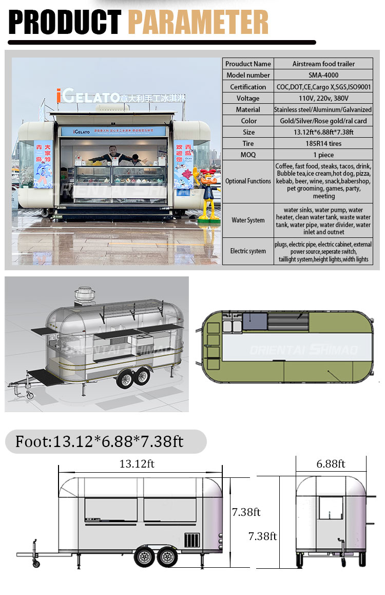 Chúng tôi có thể cung cấp xe bán đồ ăn di động Chứng nhận: DOT, CE, SGS, SCI, ISO, COC,