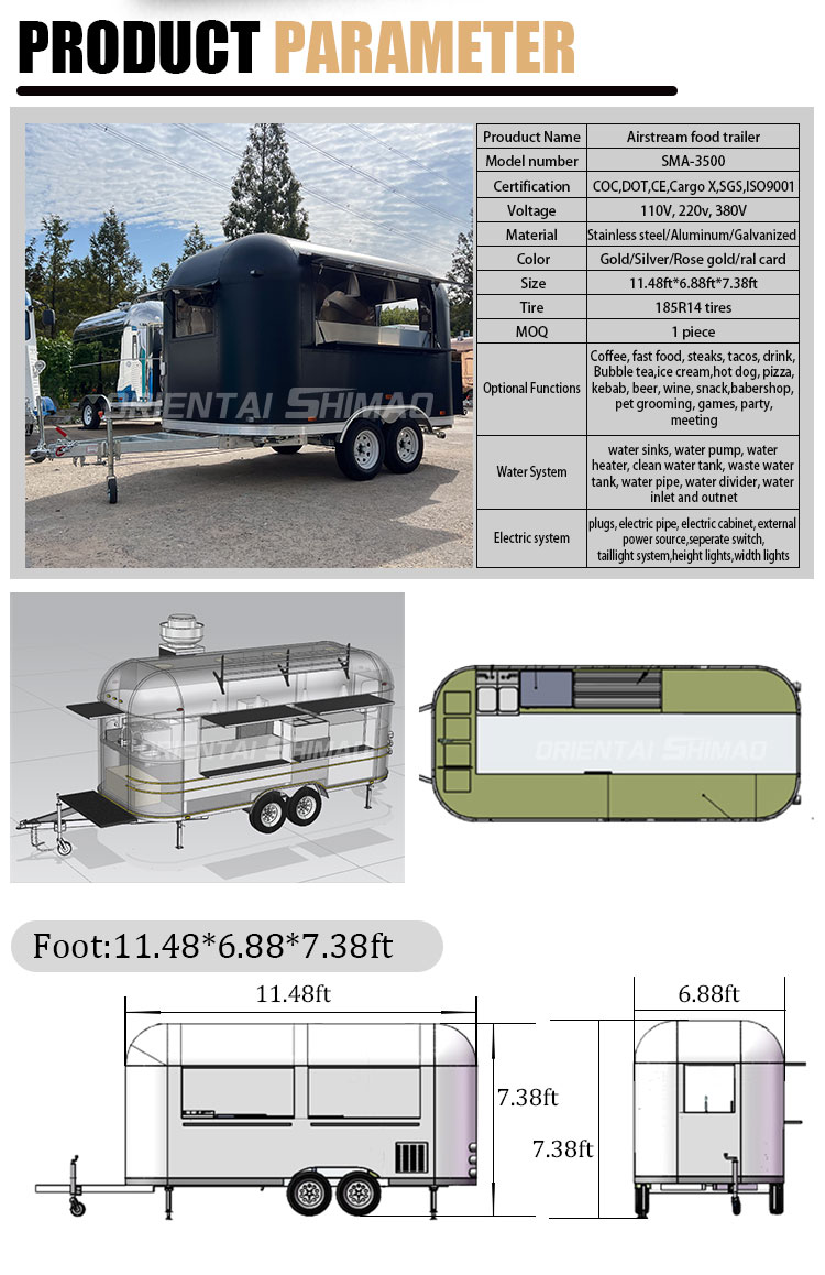 Chúng tôi có thể cung cấp xe bán đồ ăn di động Chứng nhận: DOT, CE, SGS, SCI, ISO, COC,