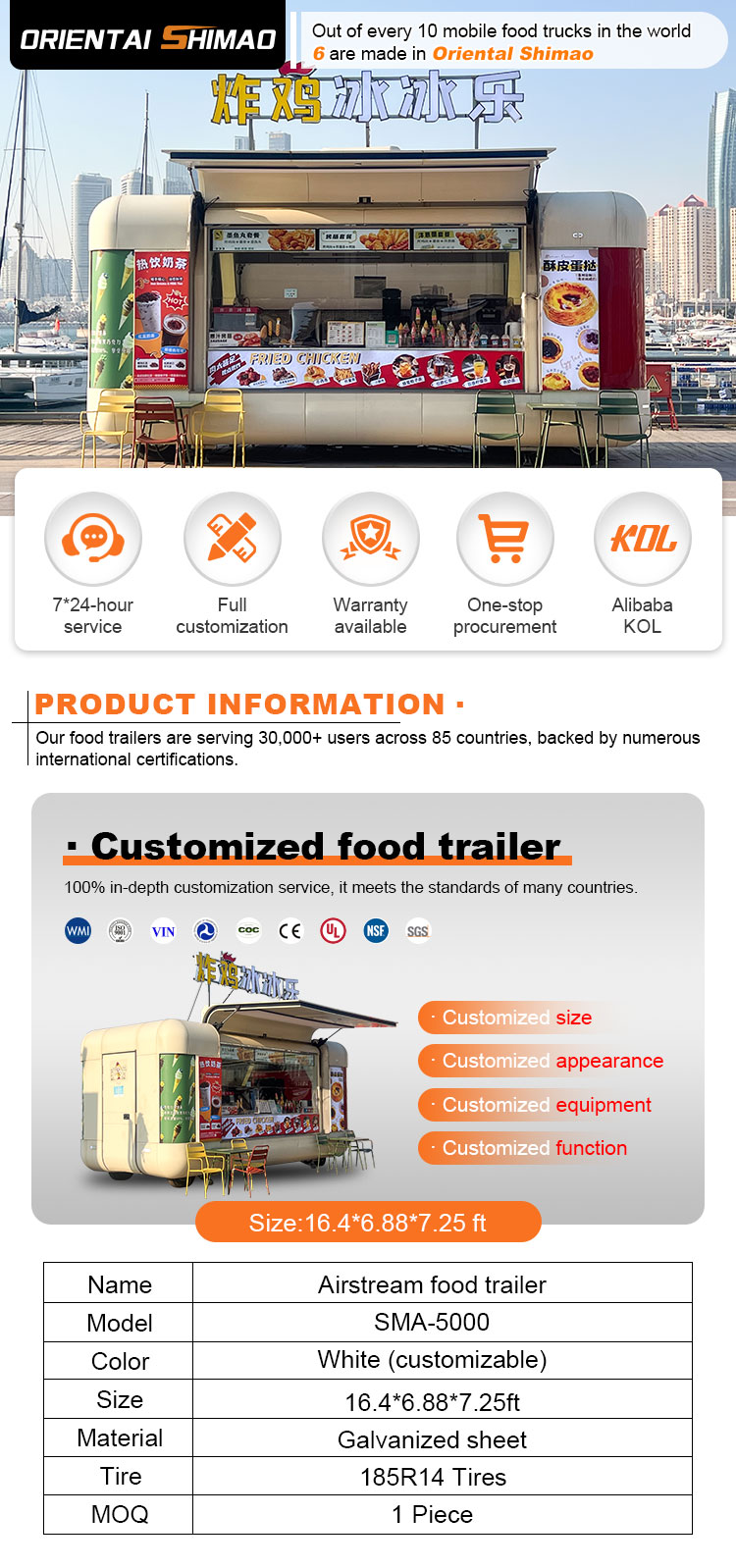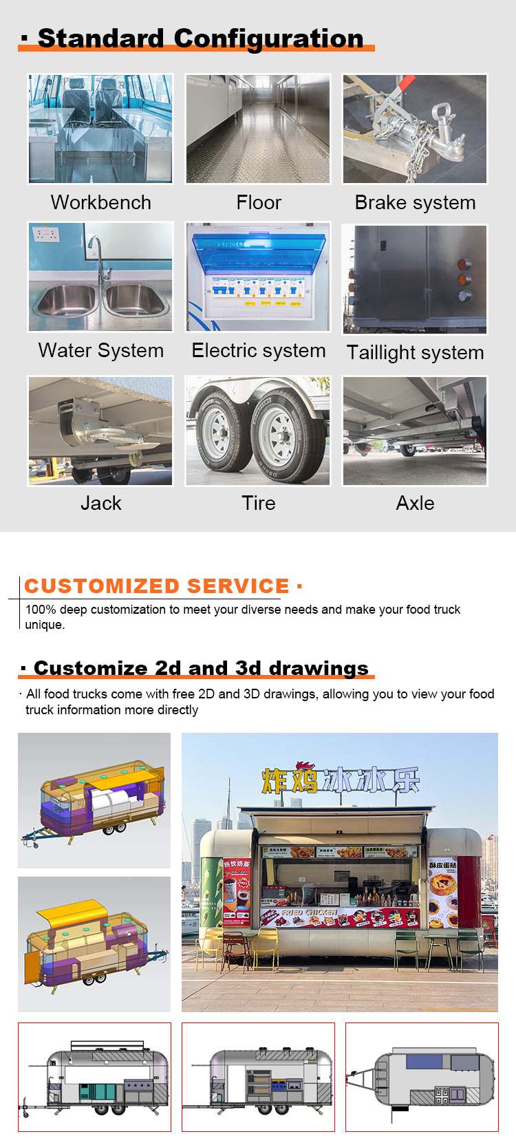 Xe tráng miệng Nhà bếp di động Xe đẩy thức ăn đường phố Phục vụ thực phẩm Trailer Xe tải thực phẩm