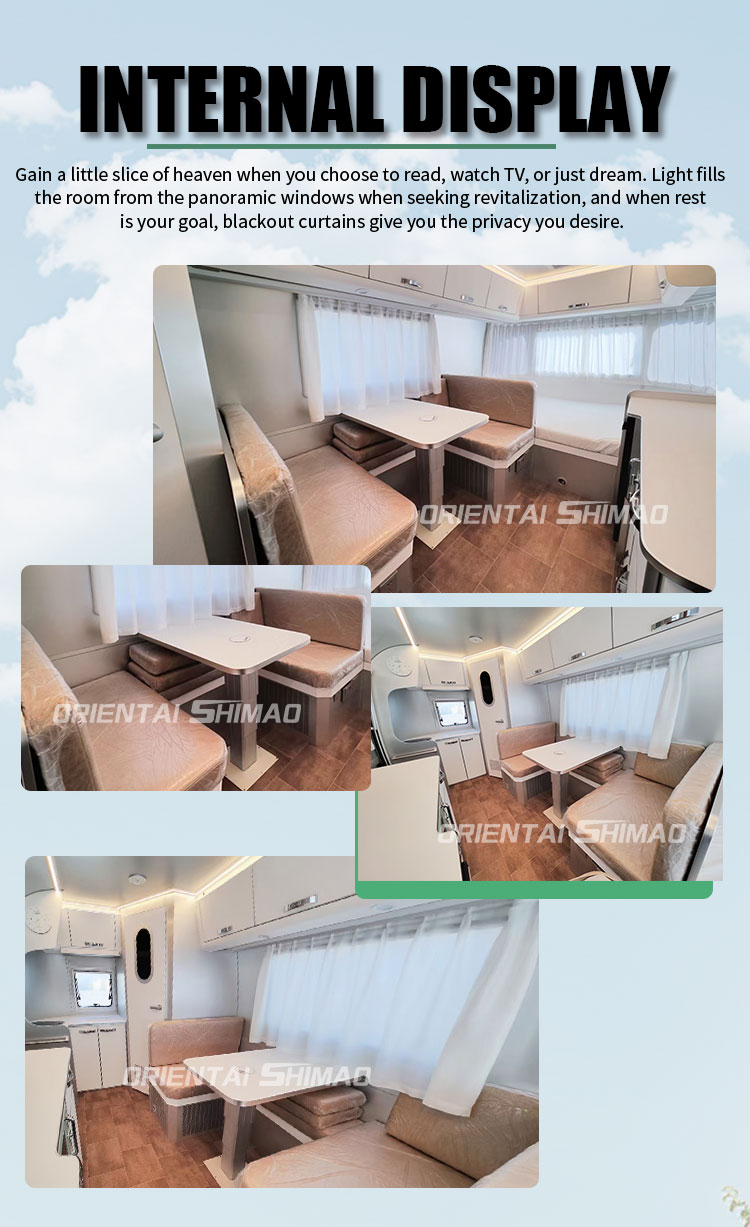 Chúng tôi cung cấp tùy chỉnh nhà RV Trailer, tùy chỉnh kích thước, tất cả các tùy chỉnh thiết bị, bạn có thể chơi đầy đủ cho trí tưởng tượng của mình để tạo ra chiếc xe mơ ước của riêng bạn!