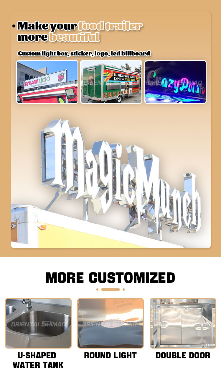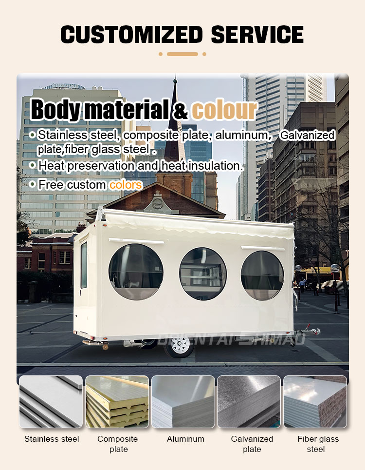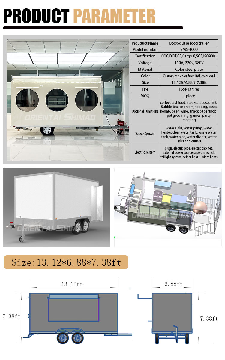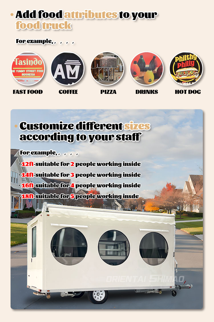 Chúng tôi có thể cung cấp xe bán đồ ăn di động Chứng nhận: DOT, CE, SGS, SCI, ISO, COC,