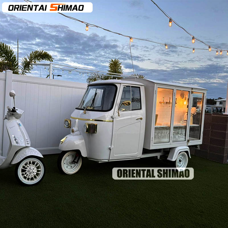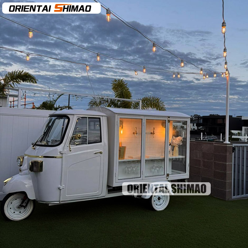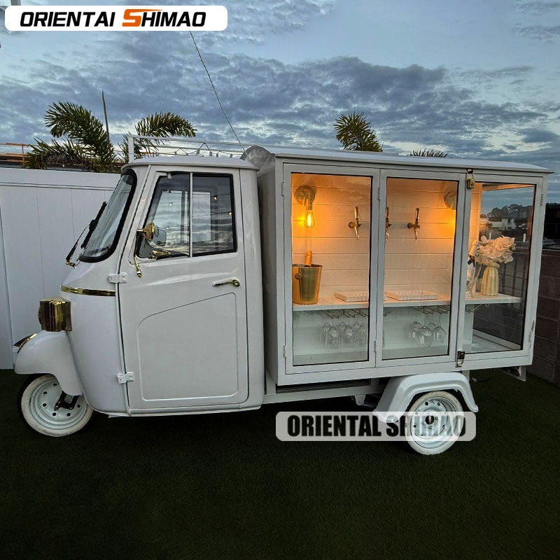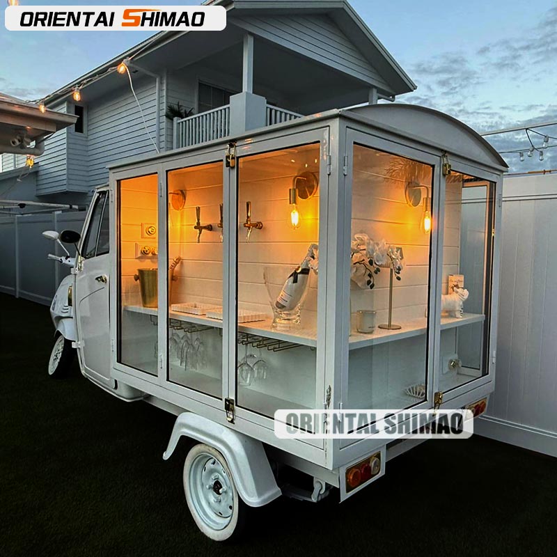Xe tải ba bánh xe ba bánh, bên ngoài được làm bằng tấm mạ kẽm, tất cả các tủ được làm bằng gỗ, tùy chỉnh thủ công tinh khiết. Vòi được làm bởi 304 ss, và bạn có thể chọn màu vòi, thường là màu vàng.